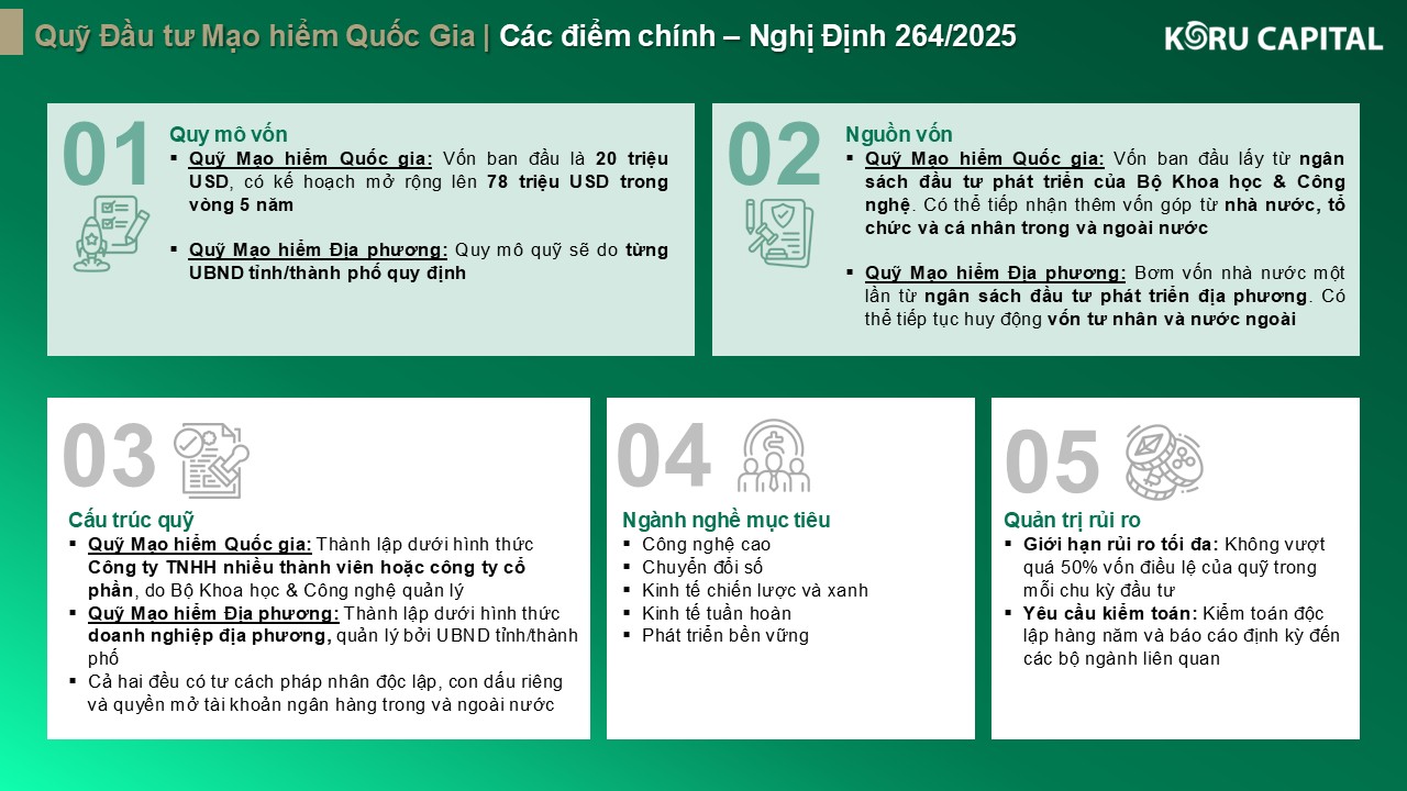 Giờ đây, điều đó đã trở thành hiện thực. Theo Nghị định 264/2025, Việt Nam đã chính thức ban hành khung pháp lý cho việc thành lập và vận hành Quỹ Đầu Tư Mạo Hiểm Quốc Gia, cùng các quỹ đầu tư mạo hiểm địa phương — đánh dấu bước tiến quan trọng trong việc Nhà nước tham gia sâu hơn vào hệ sinh thái khởi nghiệp và đổi mới sáng tạo.
