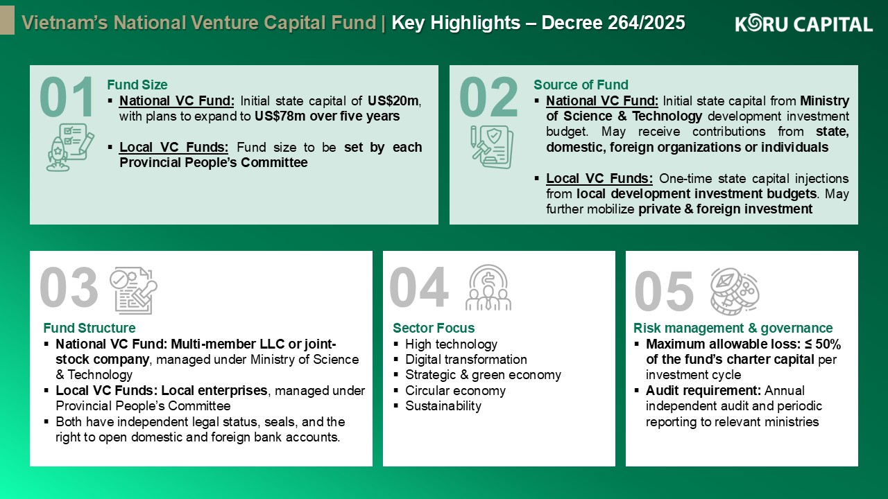 Now, it’s official. Under Decree 264/2025, Vietnam has formally outlined the establishment and operation of the National Venture Capital Fund and local venture capital funds, marking a major step toward deepening state participation in the startup and innovation ecosystem.